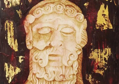 Plumilla a tinta china sepia y color con fondo de acrílico sobre papel Arches de acuarela. Medidas 29*18,5. Disponible